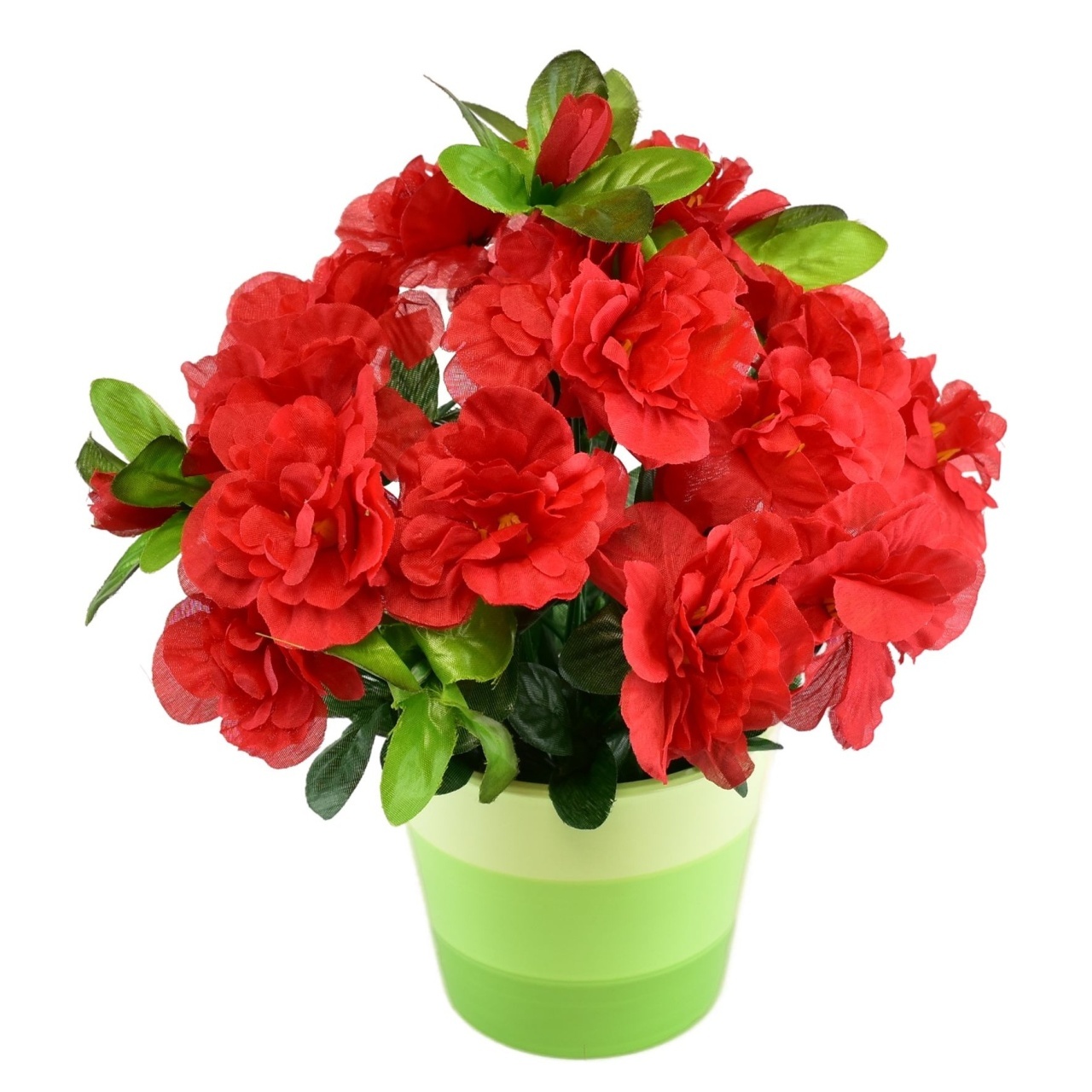 Umělá květina Azalka s červenými květy ve světle zeleném keramickém květináči dodá vašemu domovu eleganci a jemnost. Tento stylový vývazek z 18 květů azalek v červené barvě je vyroben z kvalitních materiálů, jako je plast, kov a textil, což zajišťuje jeho trvanlivost a odolnost. Kombinace se...