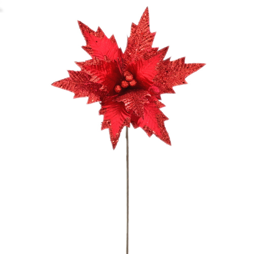 Poinsetie třpytivá - červenáPředstavujeme krásnou poinsetii s elegantním a lesklým povrchem. Tato květina má nádherně červené květy, které okouzlí každého. Její celková výška je přibližně 45 cm a květ má průměr 32 cm. Je vyrobena z kvalitních materiálů jako je textil, plast a kov, což zajišťuje...