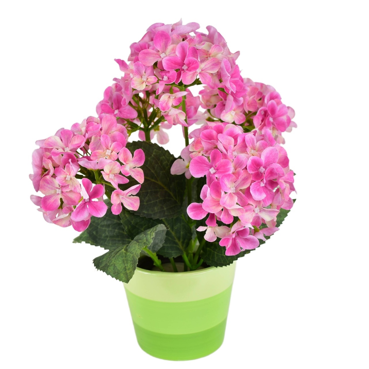Hortenzie růžová 5 květů v keramickém květináči 33x27 cm