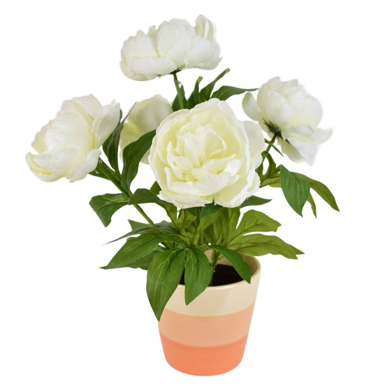 Pivoňky bílé 5 květů v keramickém květináči 40x36 cm