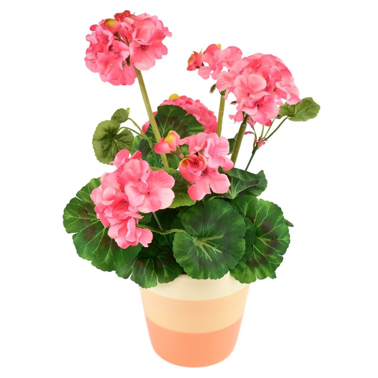 Tento jedinečný umelý muškát vyniká svojim precíznym spracovaním a použitím kvalitných materiálov, ako sú plast, kov a textil, ktoré zaručujú dlhodobú životnosť a realistický vzhľad kvetiny. Svetloružové kvety v oranžovom keramickom kvetináči vytvárajú rafinovaný kontrast a dávajú priestoru jemný a nadčasový pôvab. S rozmermi 40 cm na výšku a 25 cm na šírku je táto dekorácia dostatočne výrazná, aby pozdvihla atmosféru miestnosti, a zároveň nenáročná na priestor a údržbu.