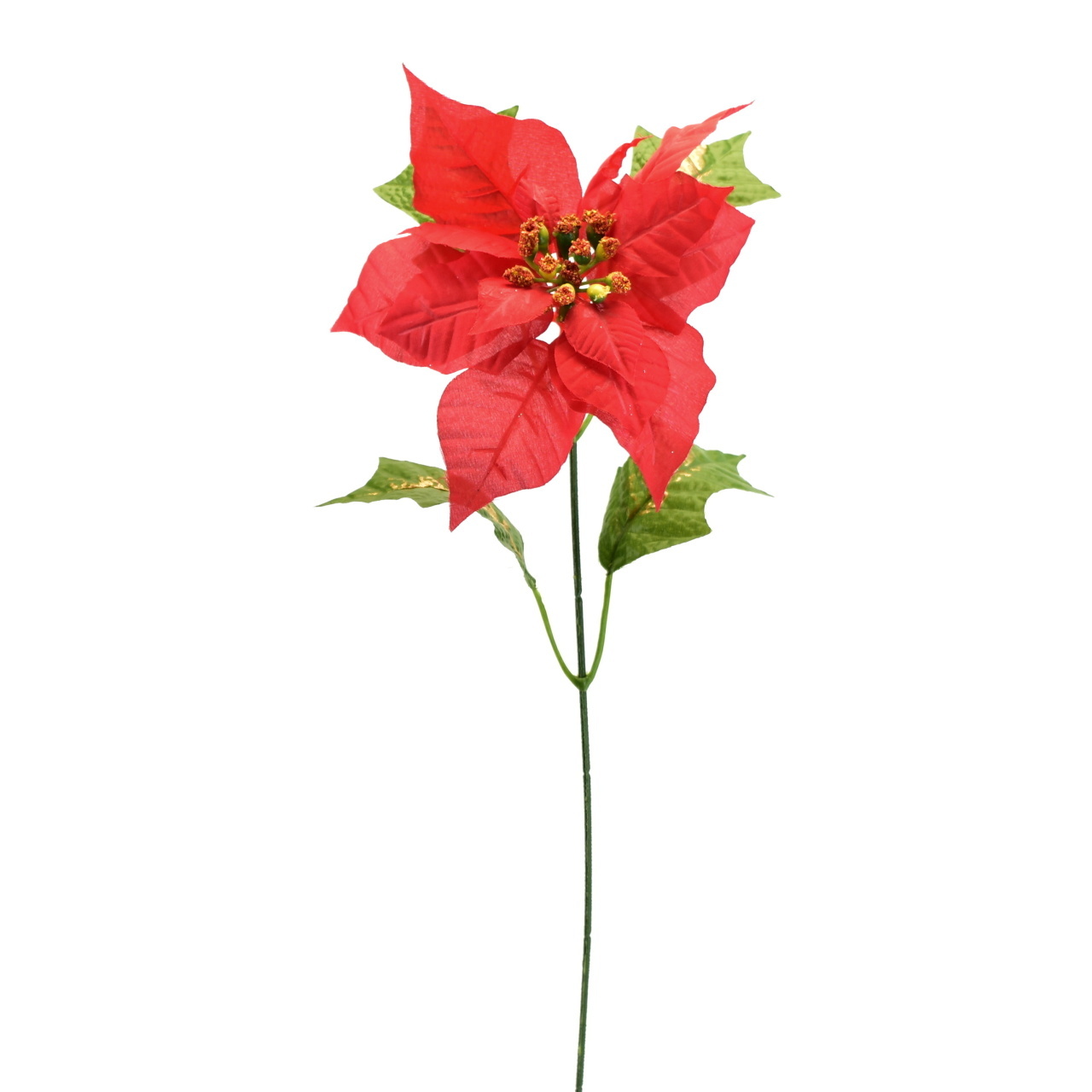 Vánoční poinsettie červená, 55 cm Udělejte vánoční atmosféru ve vašem domě s touto červenou poinsettií. Její bohatá červená barva a elegantní výška 55 cm ji dělají perfektní dekorací na vánoční stolek nebo parapet. Tato krásná rostlina má jeden velký květ s průměrem 20 cm a čtyři listy, které...