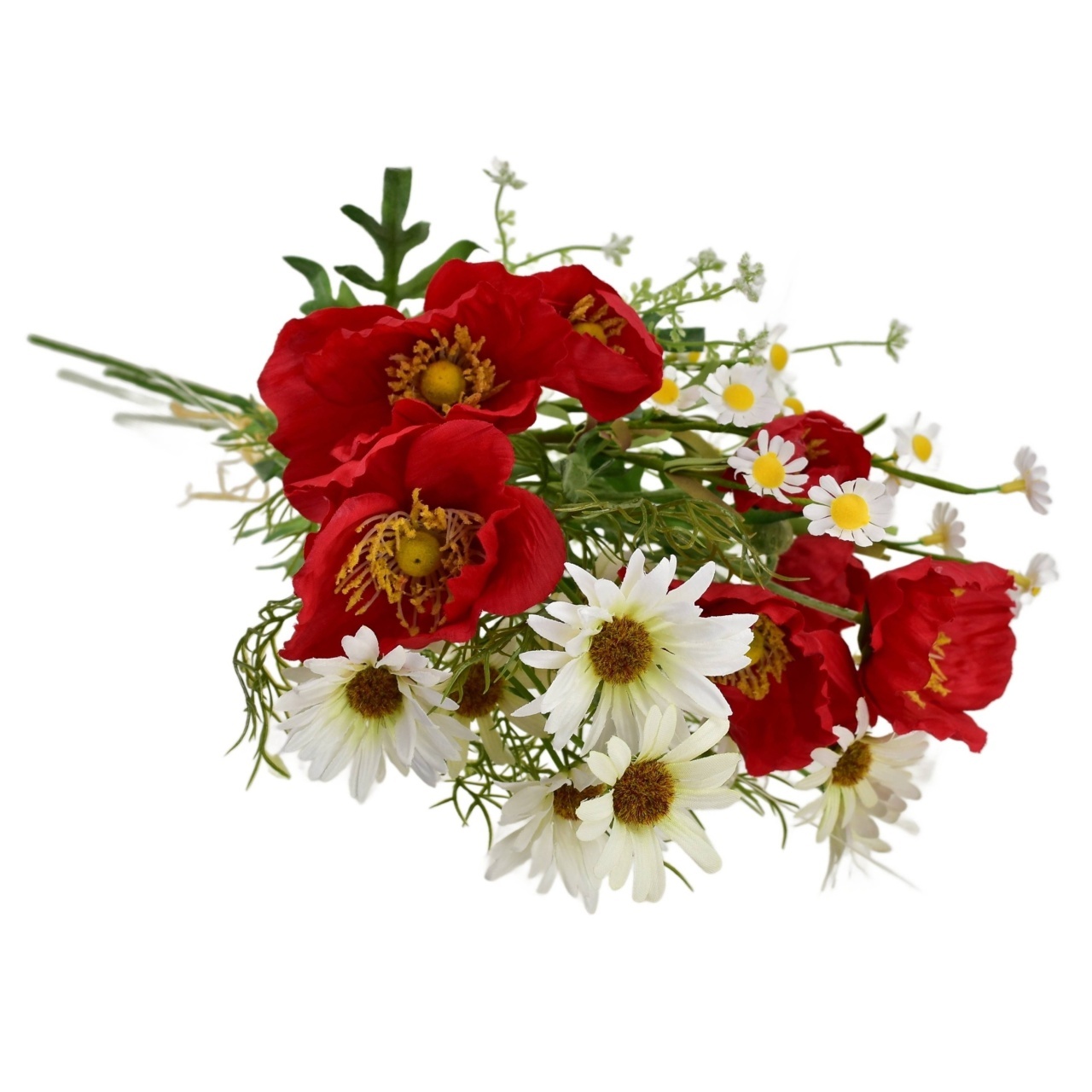 Kytice letních bílých kopretin s vlčími máky a heřmánkem 70 cm