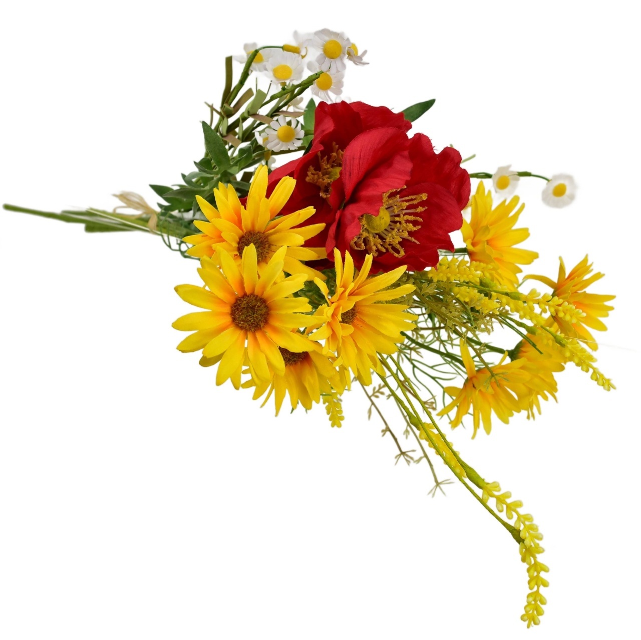 Kytice žlutých kopretin s vlčím mákem a heřmánkem 70 cm