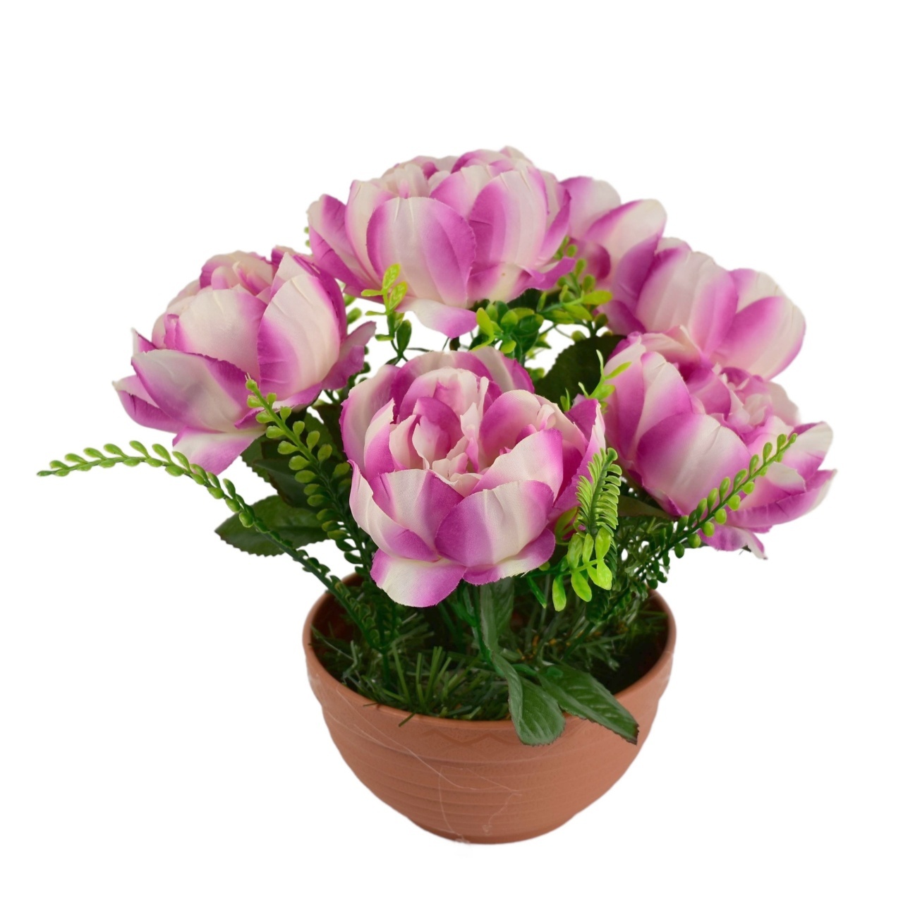 Pivoňky fialové 6 květů v terakotové misce Ø26/26 cm