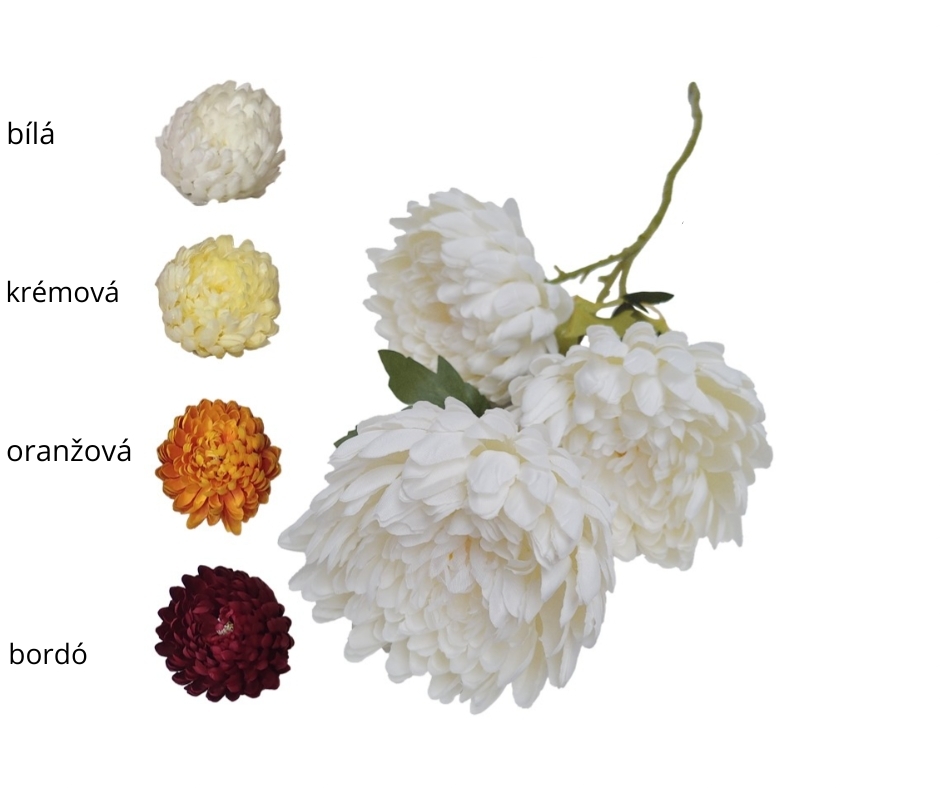 Velká umělá chryzantéma s krásným květem.Materiál: plast a polyesterRozměry:délka 87 cm prečítať celé