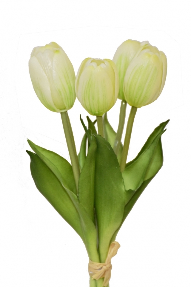 Krásná kytička 5 umělých tulipánů. Všechny tulipány vypadají jako živé, jsou vyrobené z gumy (latexu). Na listech i květech je vidět žilkování.Materiál: guma (latex)Rozměry:délka 25 cmkvět 5x3 cm prečítať celé