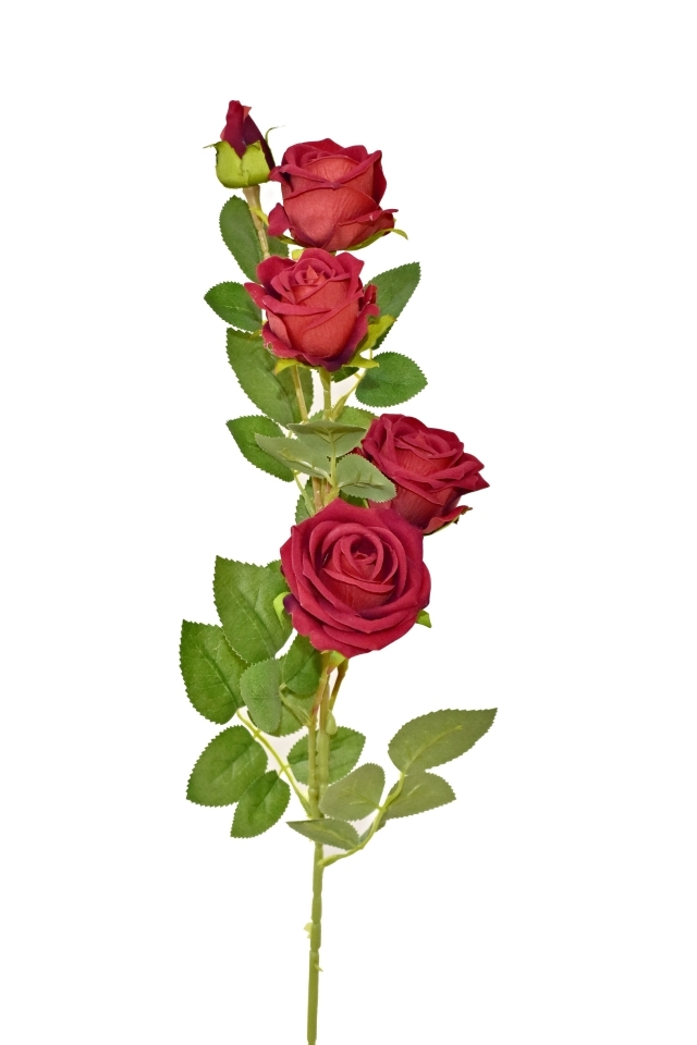 Dlouhá umělá růže se sametovými květy - 4 květy, 1 poupě a listy.Materiál: sametová textilie, poplastovaný drátRozměry:délka 83 cmprůměr květu cca 7 cm a 6 cm prečítať celé