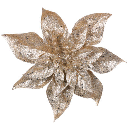 Vánoční růže na klipu, barva zlatá s glitry. - skladom, mierne poškodený kus