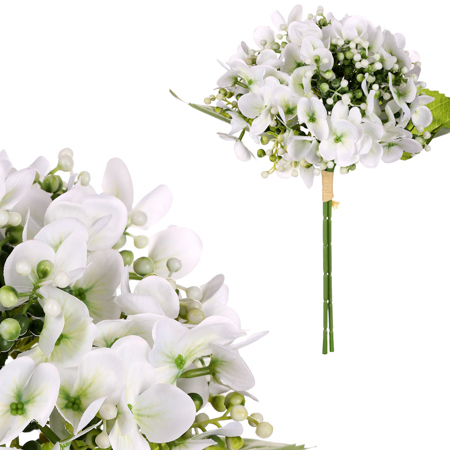 Puget hortenzií. Biela farba.