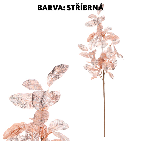 Větev vánoční - umělá s postříbřenými lístky, barva růžová.
