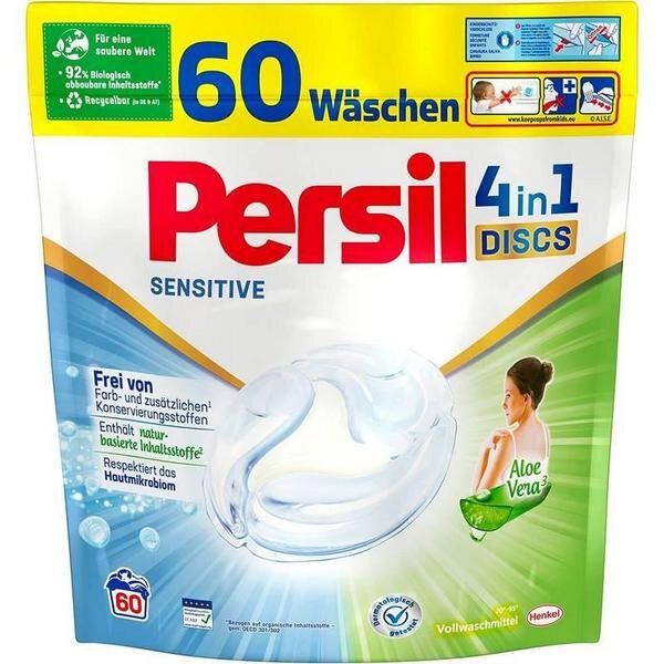 Persil Discs 4in1 60ks Sensitive Aloe Vera - kapsle na praníPersil Discs 4in1 60ks Sensitive Aloe Vera představují spolehlivé kapsle na praní, které kombinují výkonný prací výkon s ohleduplností k citlivé pokožce. Tento prací prostředek je navržen tak, aby prádlo bylo hygienicky čisté, svěží a... prečítať celé