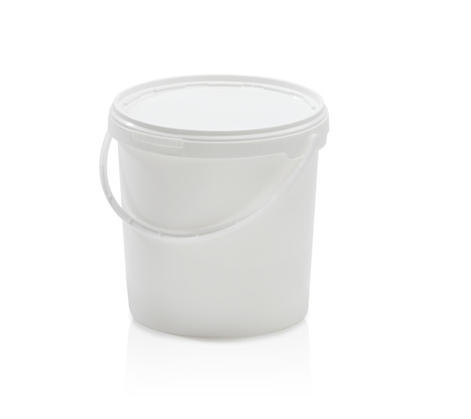 Plastový bílý kbelík s víkem s pojistkou a uchem pro přenášení. Vhodné pro skladování pevných a kapalných látek. Vyrobeno z polypropylenu (PP) a mají ve většině případů originální uzavírání (pojistku na otevření). Objem 10700 ml, průměr 27.9 cm a výška 27 cm. Vhodné pro styk s potravinami. EAN