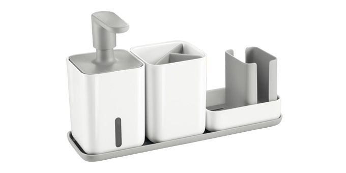 Ucelená souprava pro mytí nádobí s odkládací miskou pro přehledné umístění v blízkosti dřezu. Snadné plnění a dávkování saponátu, vyjímatelné vložky zásobníků urychlují schnutí a usnadňují čištění. Vyrobeno z odolného plastu s protiskluzovou úpravou dna. 3 roky záruka. prečítať celé