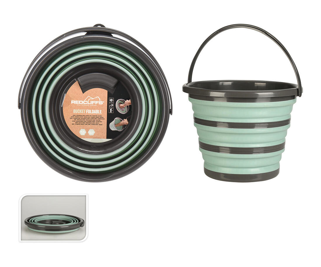 Vedro s objemom 10 litrov, ktoré nezaberie takmer žiadne miesto vďaka svojej skladacej konštrukcii. Ideálny pomocník do domácnosti, na chalupu, do záhrady alebo karavanu.