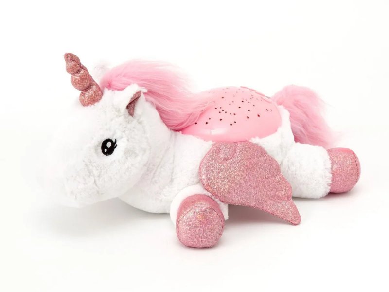 Noční světlo v podobě něžného plyšového jednorožce s projekcí hvězdné oblohy pomůže vašemu dítěti uklidnit se a snáze usnout. Promění pokoj vašeho dítěte v klidnou oázu pod noční oblohou. Světelný projektor promítá na stěnu či strop hvězdnou oblohu s měsícem a třemi známými souhvězdími ve třech barvách světla.