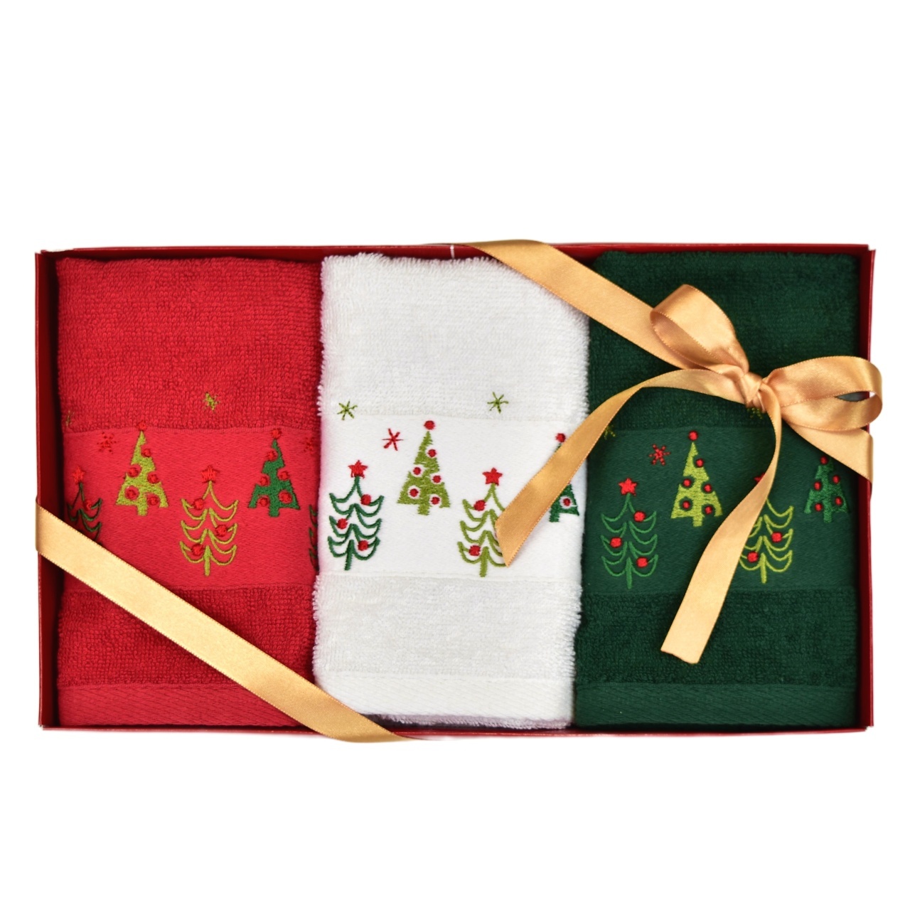 Vánoční ručníky se stromky v dárkovém balení - 3ks 30×50 cm