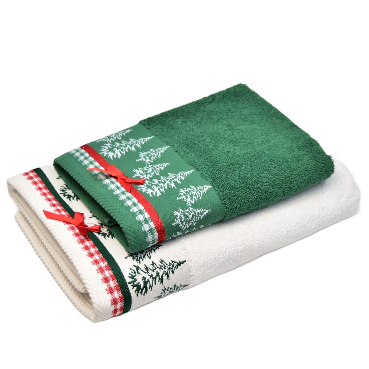 Vánoční zelený ručník a bílá osuška s mašličkou 2 ks set
