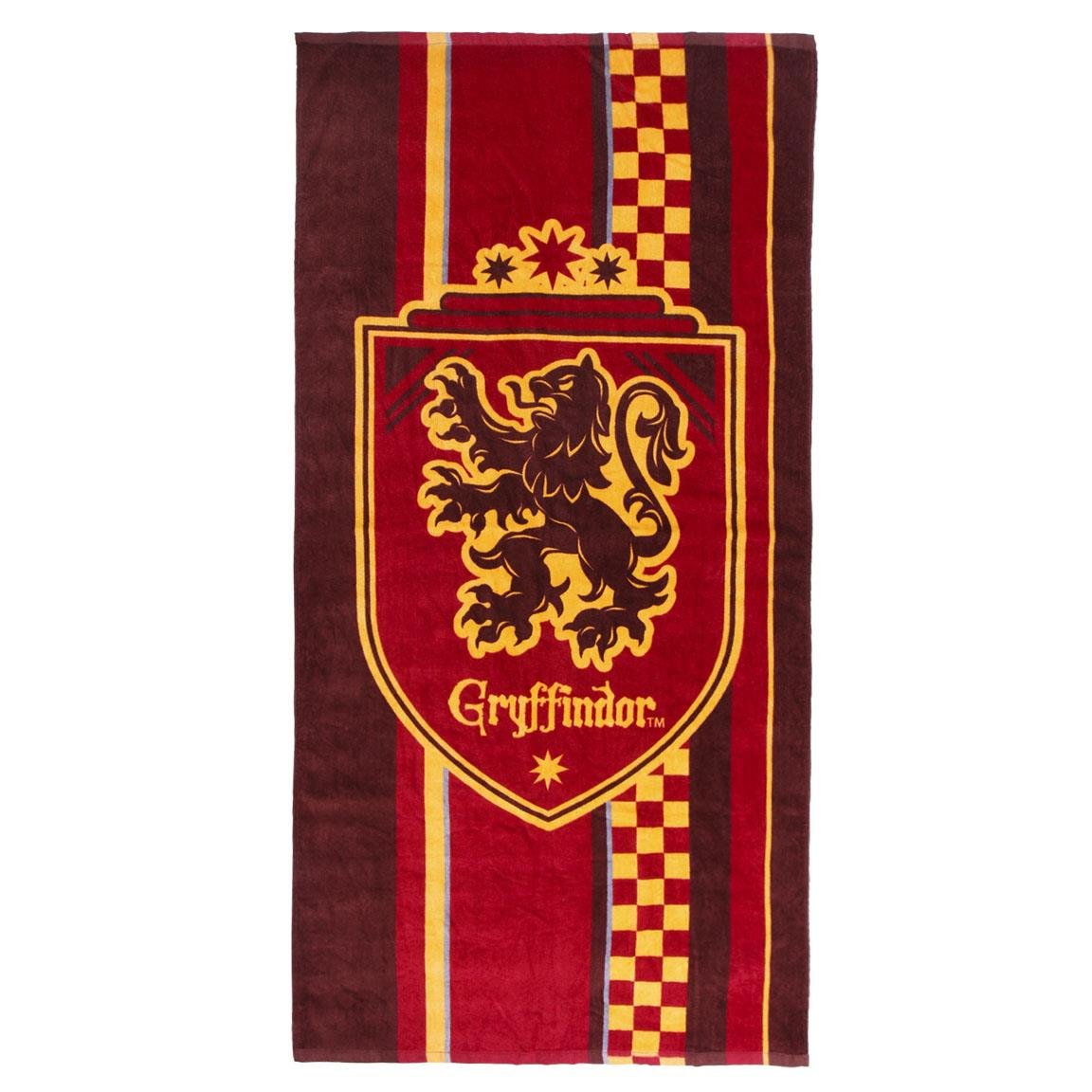 Atraktivní ručník červené barvy s motivem a znakem školní koleje Nebelvír (Gryffindor).