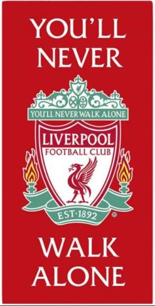 Bavlněný červený ručník s logem Liverpool a nápisem You´ll never walk alone.
