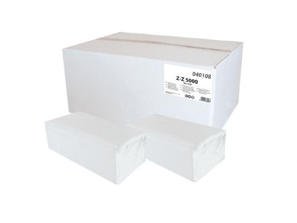 Papírové ručníky ZZ, 1 vrstva, bílé, celulóza, 5000 ks
