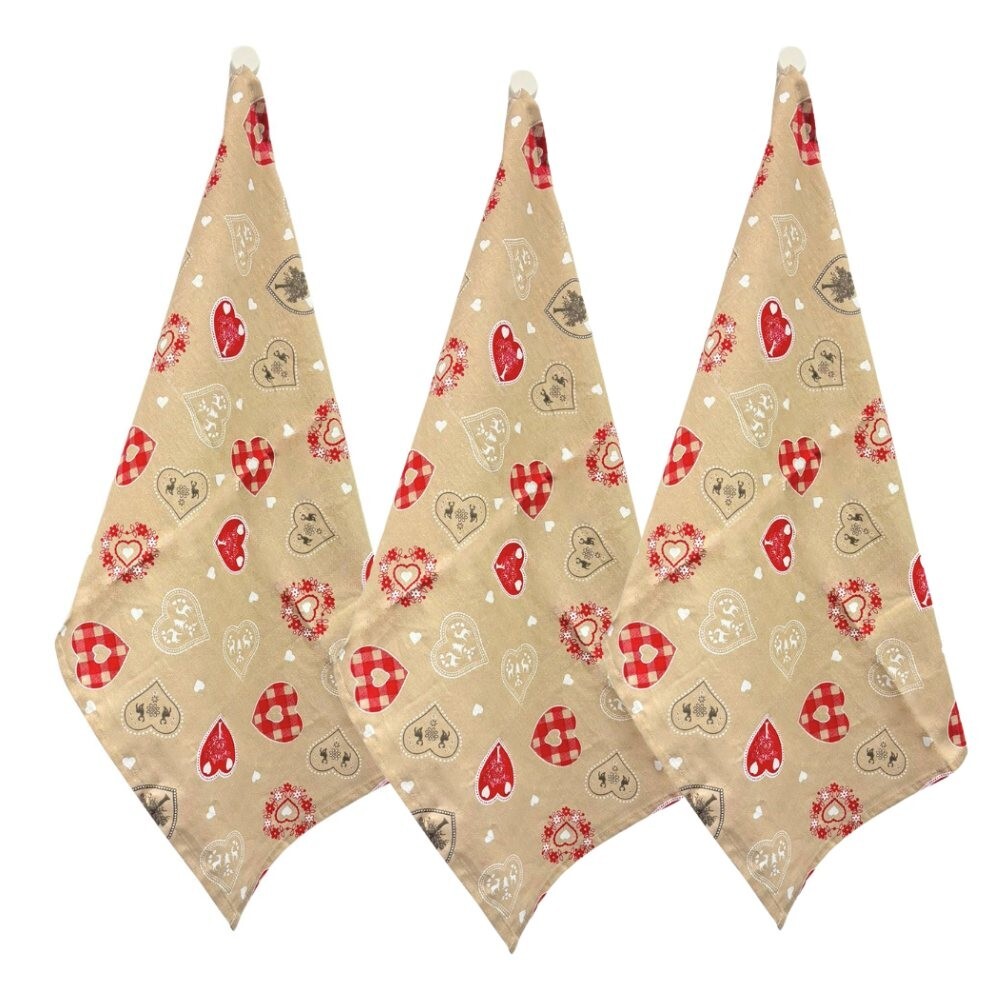 HOME ELEMENTS Sada 3 utěrek 50*70 cm, Vánoční srdce