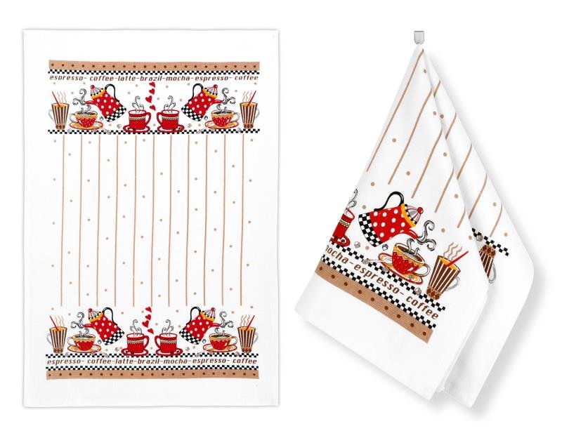 Kuchyňská utěrka 1ks - latte - červená, béžová - 40x60 cm