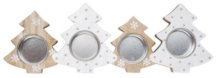 Svícen dřevo strom advent béžový/bílý 30x10 cm