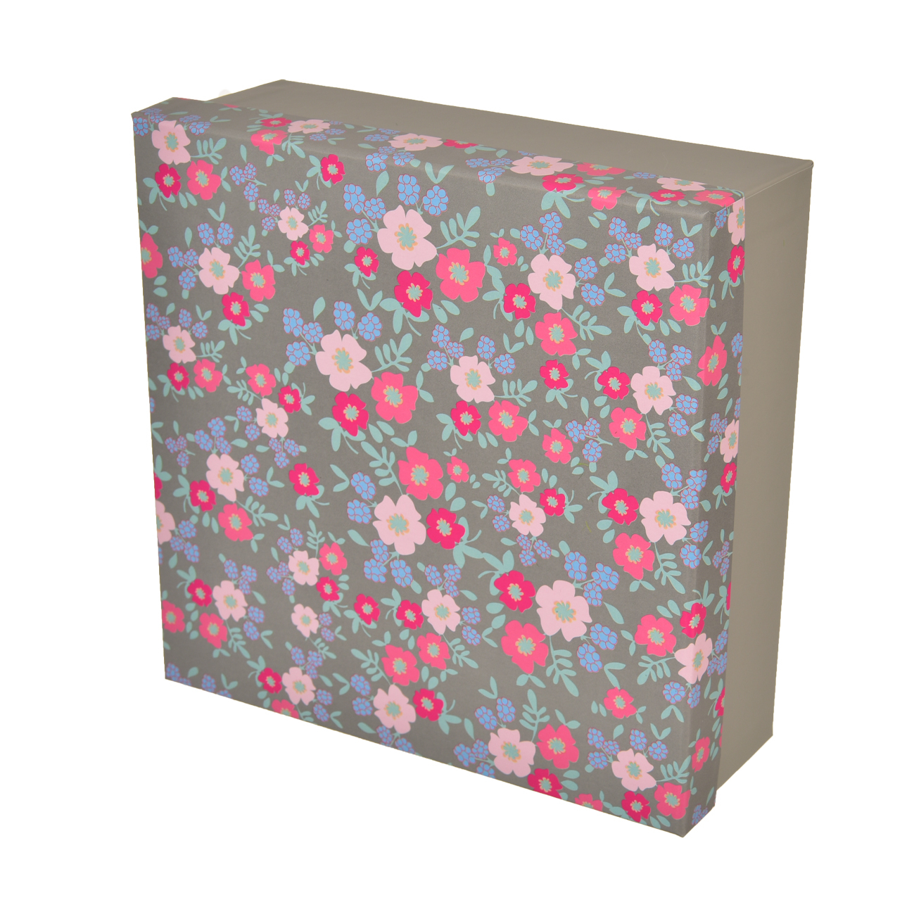 Krabice dárková papír kytička šedá 22x22x8 cm