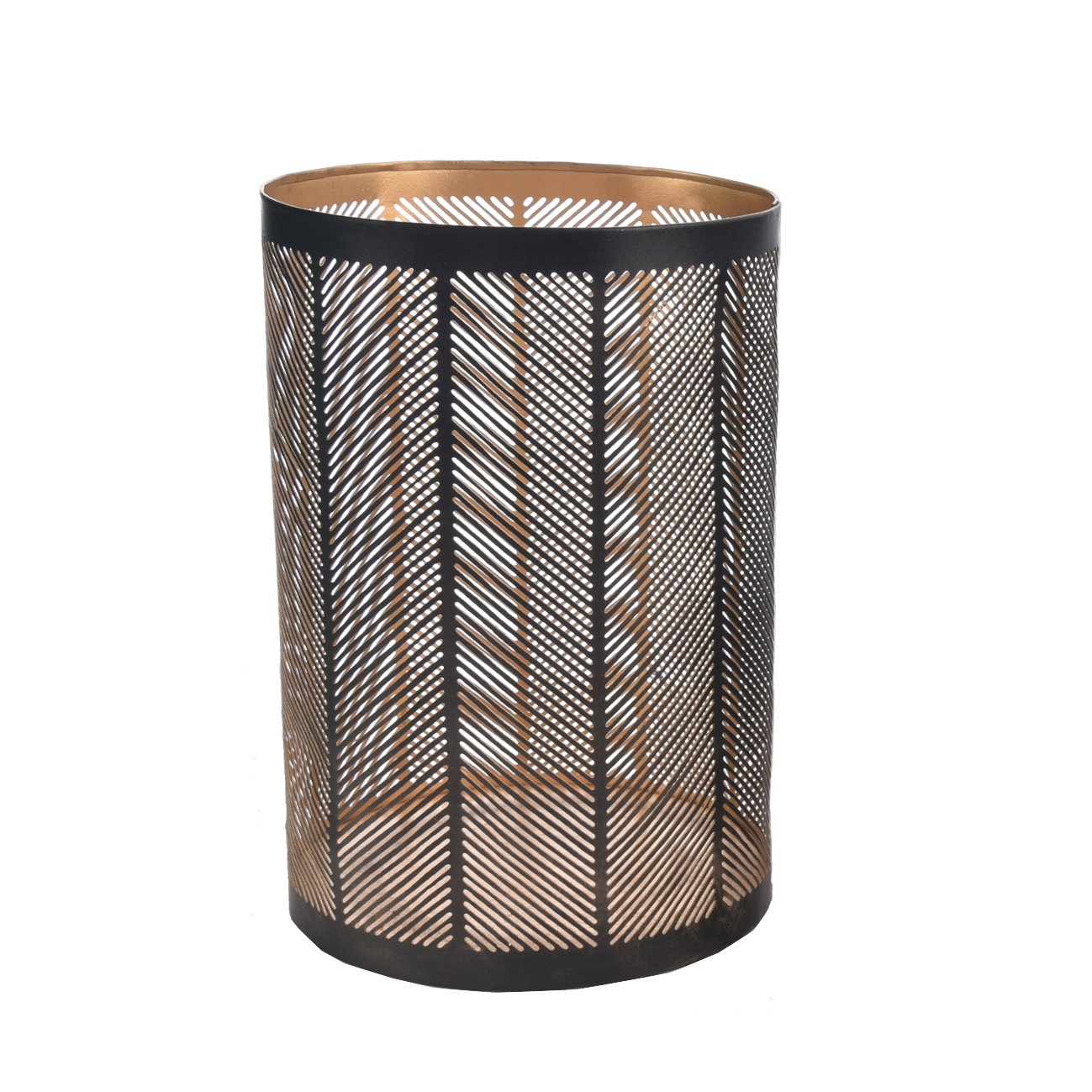 Svícen kov LINE černý/zlatý 13x13x22 cm
