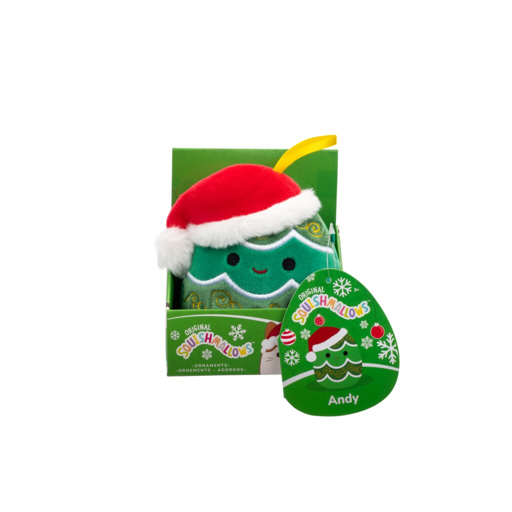 SQUISHMALLOWS Vánoční ozdoba Vánoční stromek s čepicí - Andy, 10 cm