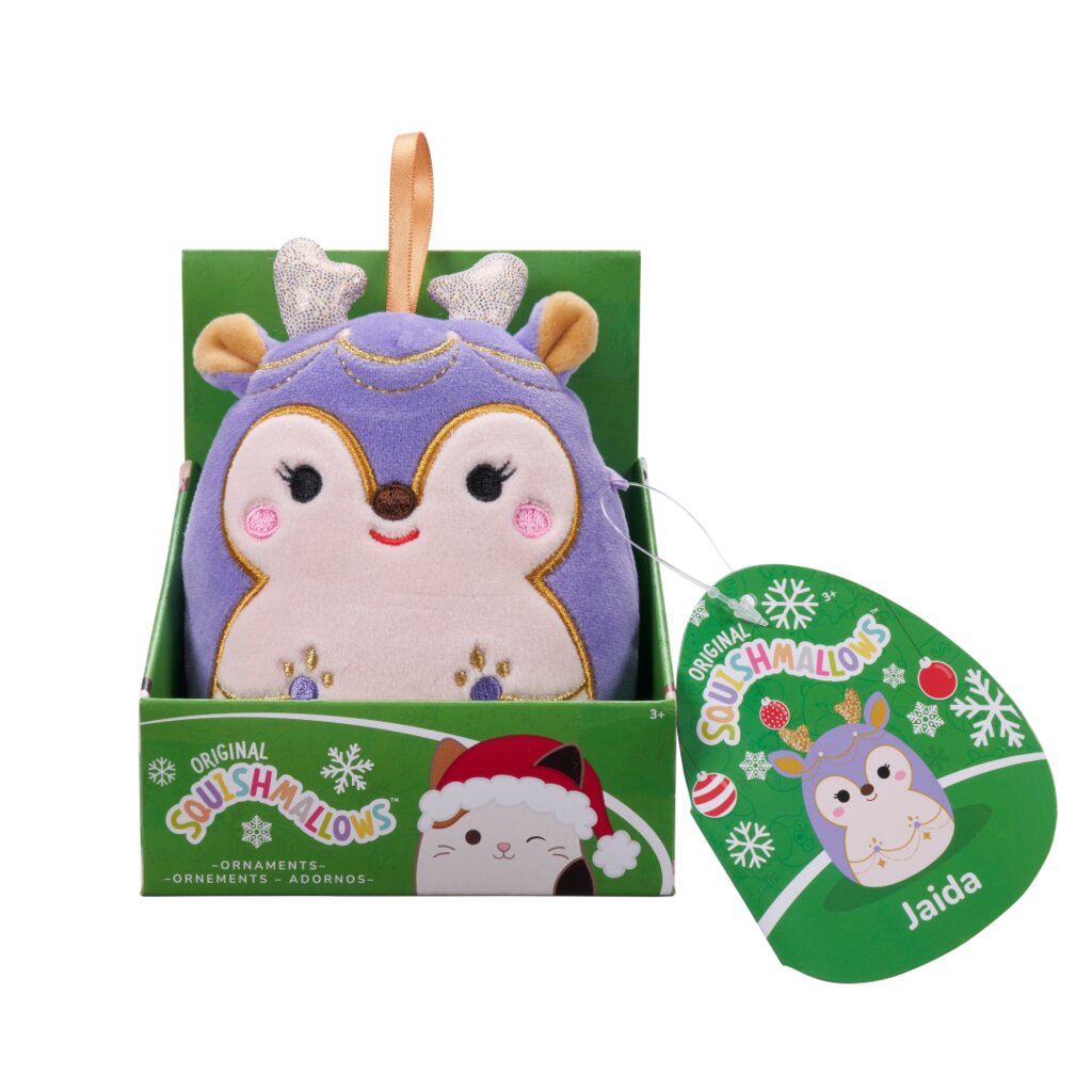 Squishmallows Vánoční ozdoba Sob s třpytivými parohy Jaida 10 cm