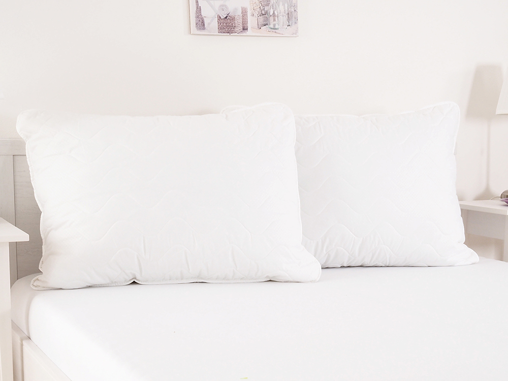 Polštář je v povrchové části podložený polyesterovým rounem a prošitý. Náplň je tvořena z dutých vláken tvarovaných do chomáčků, které dodávají polštáři měkkost a pružnost.