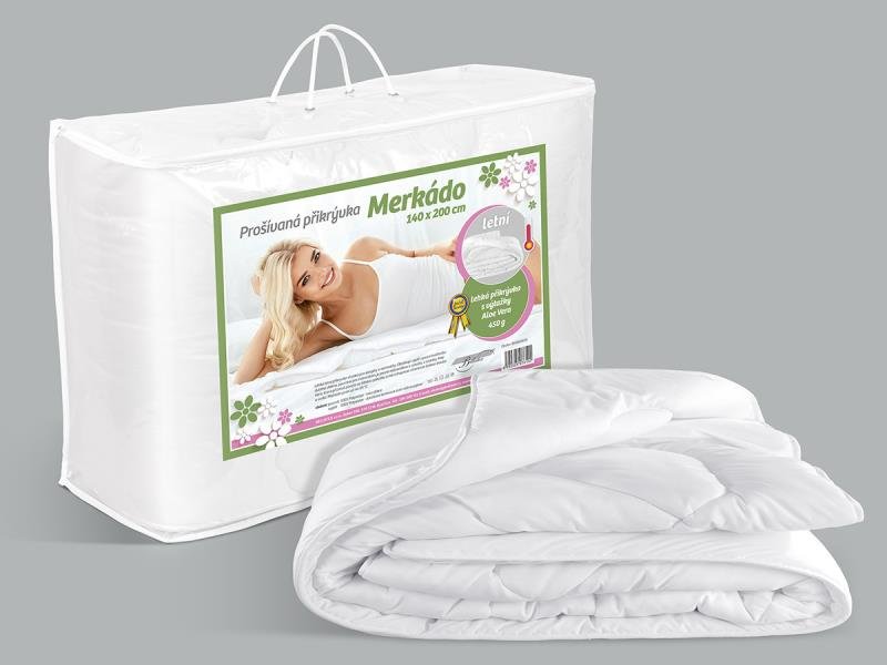 Lehká letní přikrývka vhodná pro alergiky a astmatiky. Obsahuje výplň vysoce kvalitního dutého vlákna, povrchovým materiálem je jemné mikrovlákno s výtažky z rostliny Aloe Vera, která příznivě působí na lidskou pokožku a má schopnost zmírňovat bolest kloubů a svalů. Možnost praní až na 95°C.