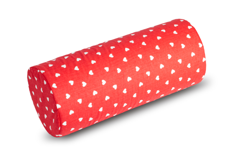 Válec Adéla - povlak - Srdíčko červená, bílá - průměr 15 x 35 cm