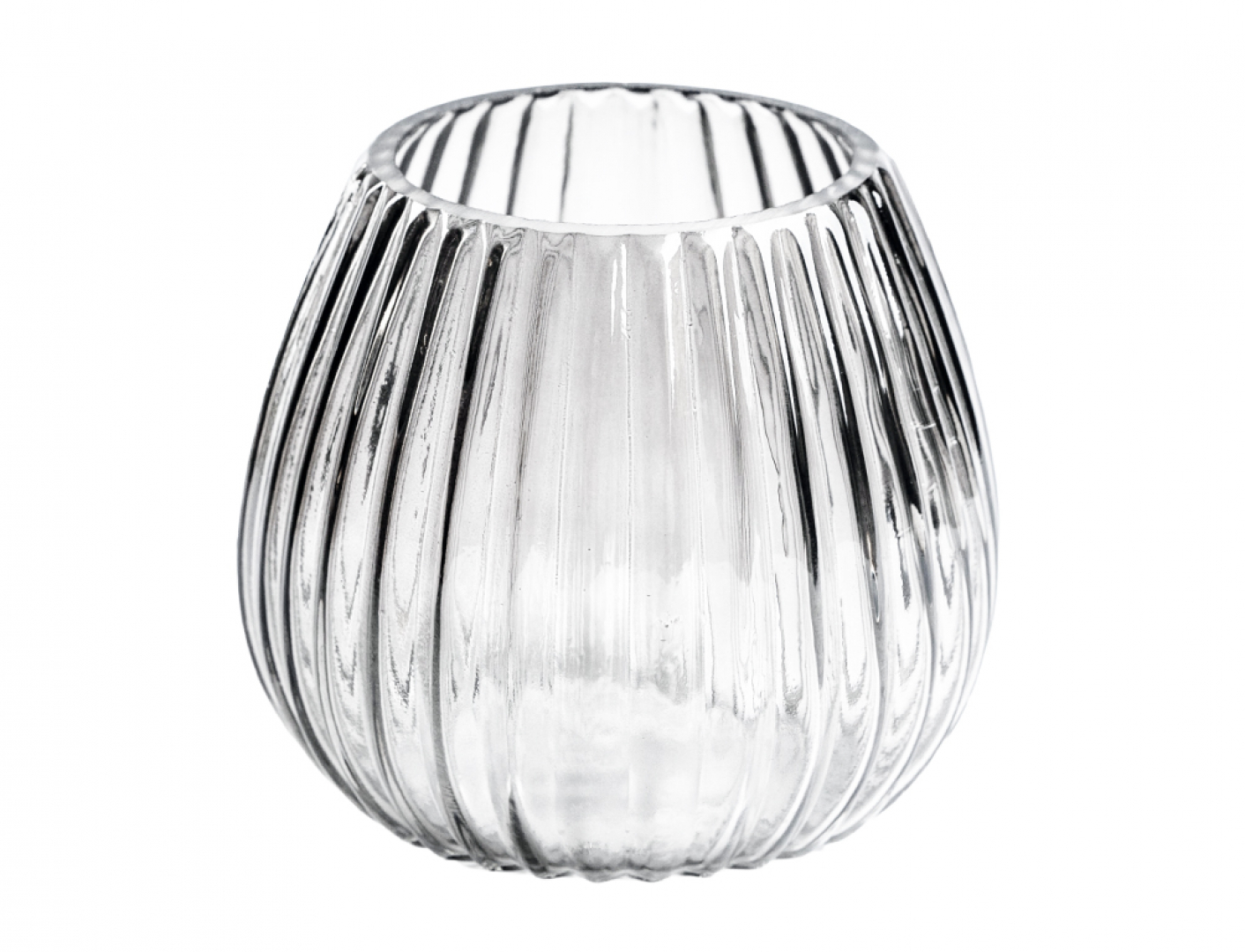 Skleněný svícen na čajovou svíčku, jeho rýhy vyniknou při hoření, zútulní každý interiér a pozvedne slavnostní tabuli. Strojová výroba. Rozměry: průměr 10 cm, výška 9 cm. Barva: transparentní. prečítať celé