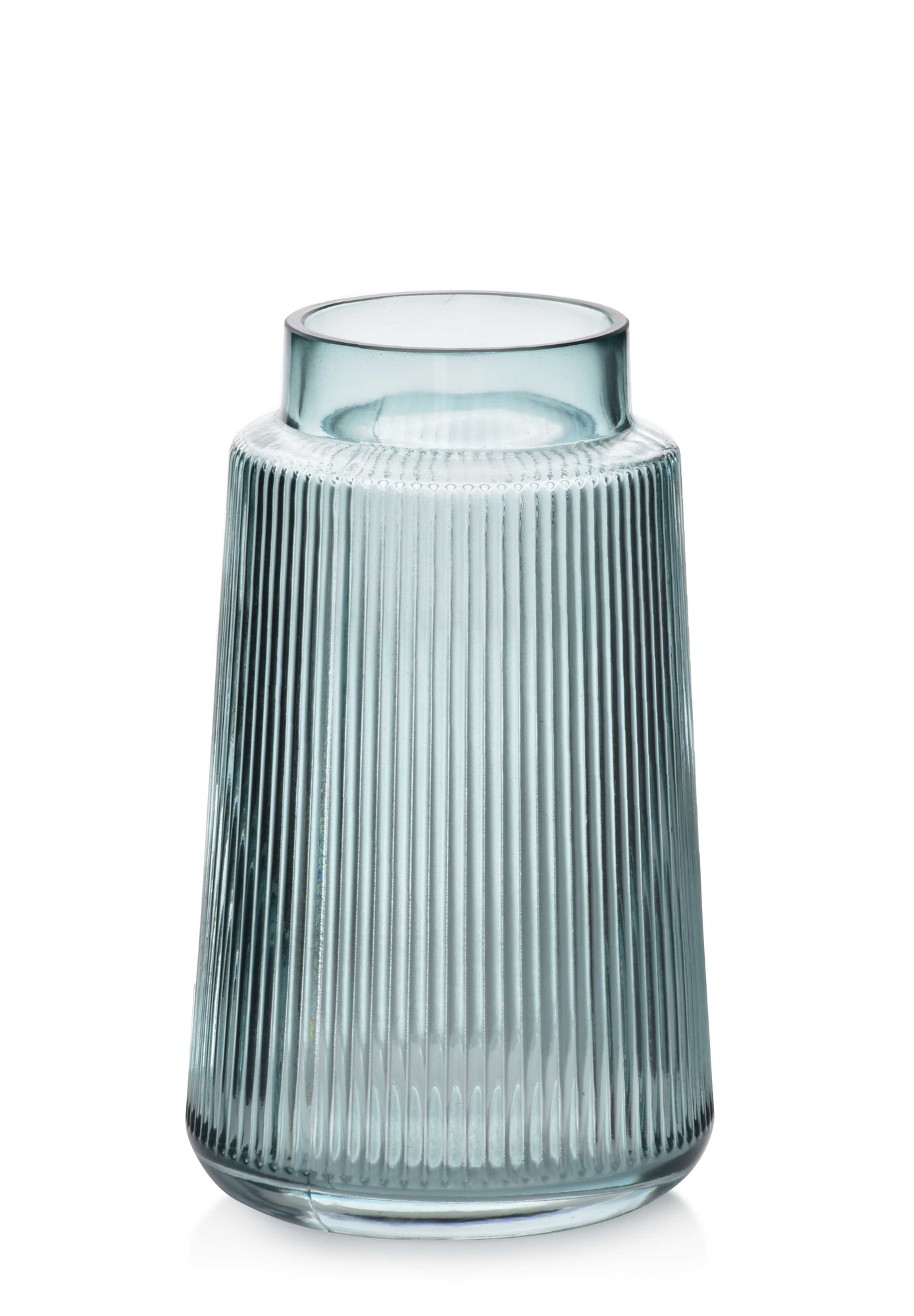 Wazon szklany Serenite marki MONDEX since 1986r. Utrzymany w kolorystyce szaro niebieskiej w tłoczeniem w pionowe paski. W dzisiejszych czasach wazon to nie tylko naczynie na kwiaty, ale także wyjątkowa ozdoba wnętrza. Świeże cięte...