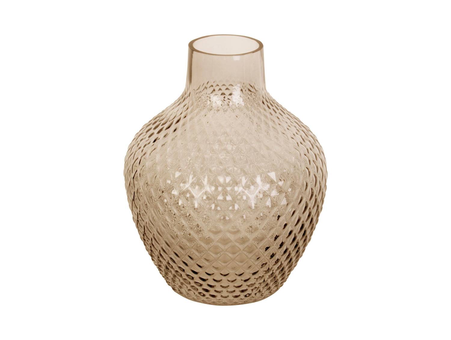 Skleněná váza v pískově hnědé barvě.