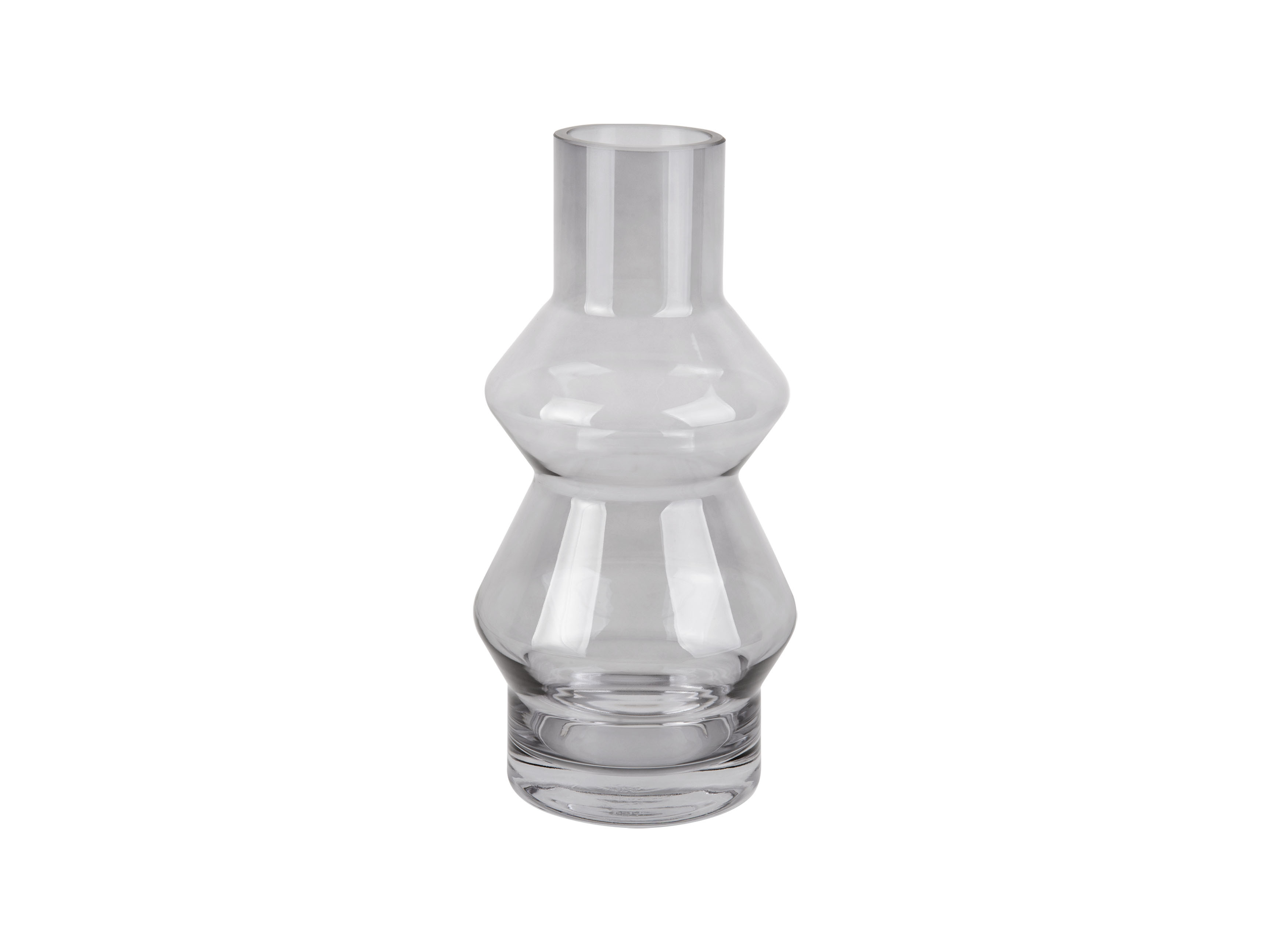 Skleněná váza v šedé barvě.