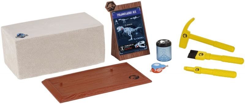 Je čas začít kopat! Nyní si děti mohou hrát na opravdové „paleontology“ se setem Vykopávky Jurského světa! Najdeš zde vše potřebné, abys mohl začít. Najdi a sestav kompletního T-Rexe z kostí z vykopávek. Použitím přiložených nástrojů (kladívka, štětečku a lopatky) máš možnost najít a odhalit...