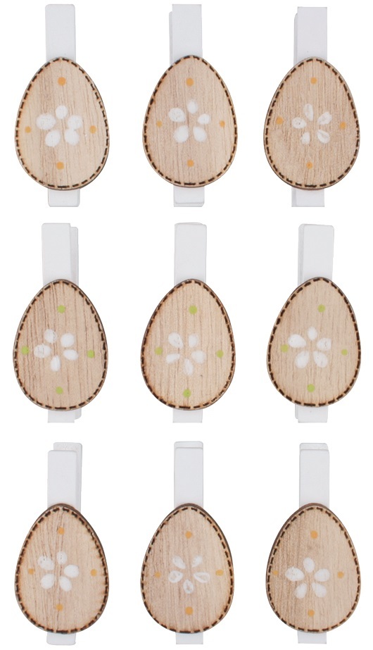 Dřevěná vajíčka na kolíčkuVajíčka využijete k dekorování věnců, vazeb či přáníček.9 kusů v balení. prečítať celé
