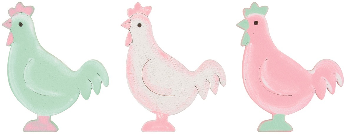 Dřevěná slepička s lepíkem pastelové barvySlepičky využijete k dekorování věnců, vazeb, dárků či přáníček.24 kusů v balení. prečítať celé