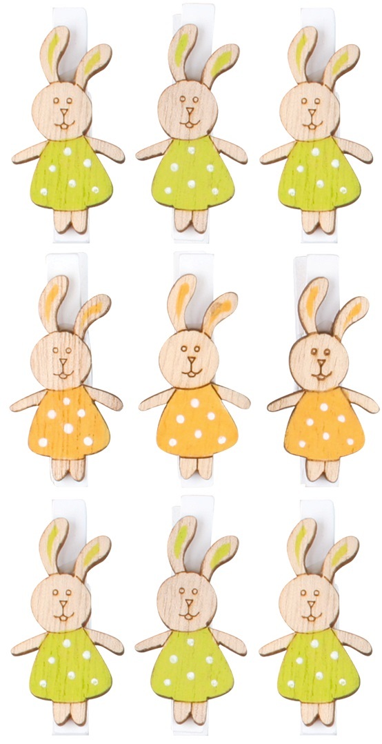 Dřevění zajíčci v sukýnce na kolíčku 4,5 cm, 9 ks v sáčku