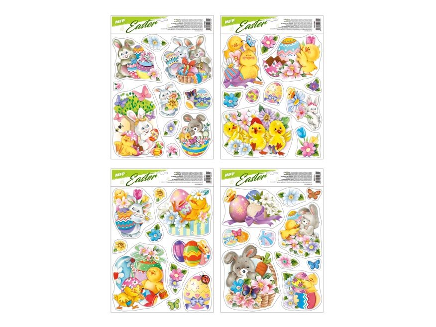 Fólia je dodávaná v mixe po 4 kusoch, pričom každý kus má originálne motívy zodpovedajúce veľkonočnej tematike. Sú ideálne pre domácnosti, škôlky, školy alebo kancelárie, kde chcete vytvoriť príjemné a jarné prostredie počas sviatkov aj mimo nich.