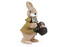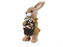 Povrch zajíčka je z jemných bavlněných nití, které působí jako srst. Zamilujete si také hravé detaily v podobě jutového kabátku s dřevěnými knoflíčky, motýlka pod krkem a košíčku s květy.