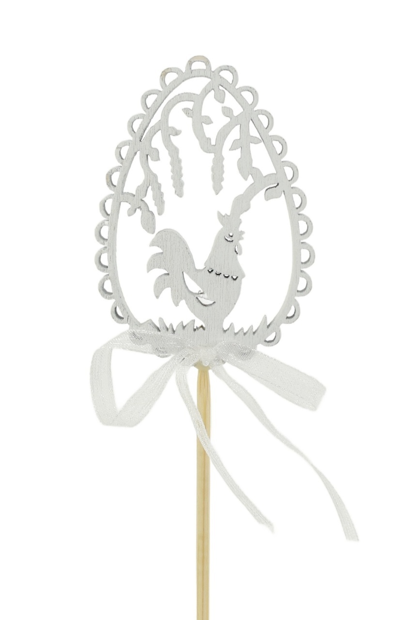 Dřevěný perforovaný zápich s motivem vajíčka s kohoutkem je ideální volbou pro velikonoční a jarní dekorace ve vašem interiéru. Tento stylový doplněk přináší do vašeho domova sváteční atmosféru a okouzlí každou návštěvu.Barva: bíláVýška dekorace: 6 cmŠířka dekorace: 4,5 cmVýška s tyčkou: 35...
