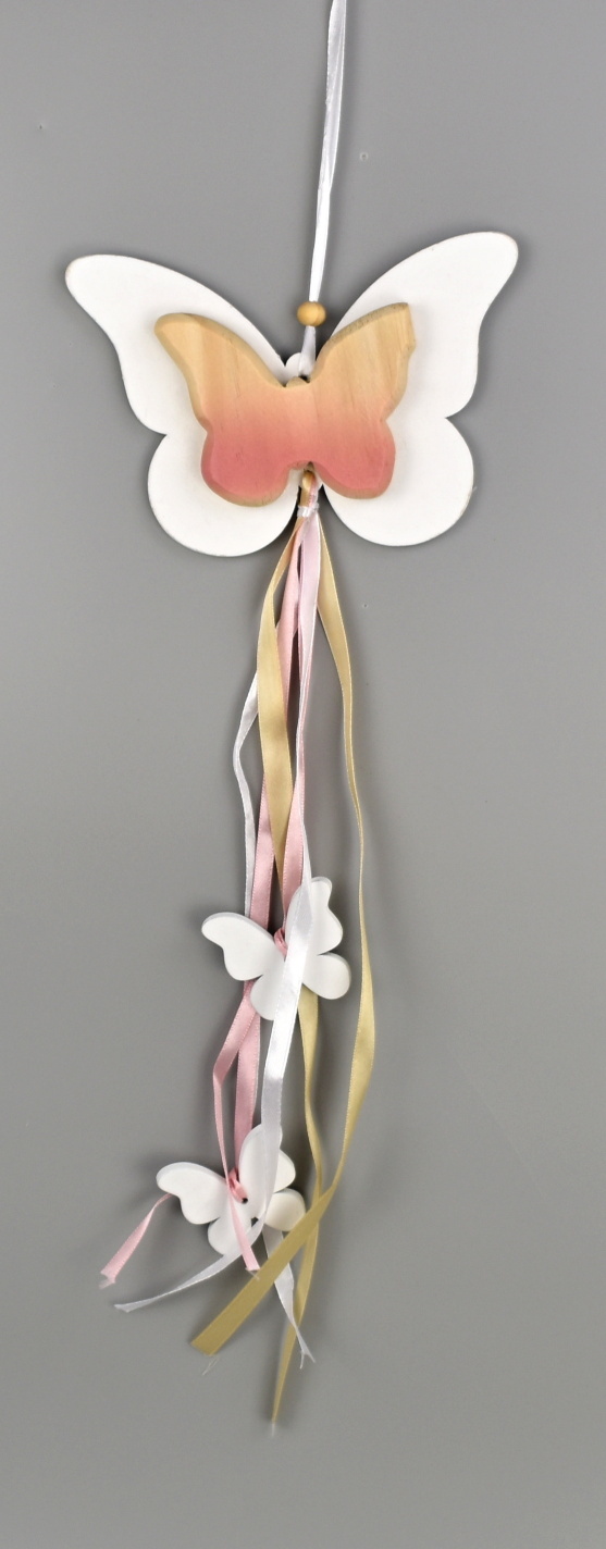 Motýl dřevěný na zavěšení se stuhami. prečítať celé