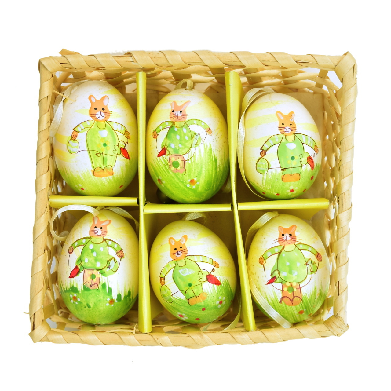 Kraslice z pravých vajíček ručně malovaná, 6 ks v košíčku