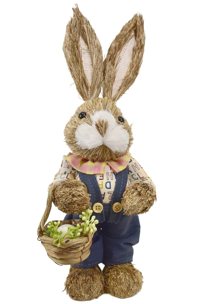 Slámový zajíc s košíčkem 33x13 cm