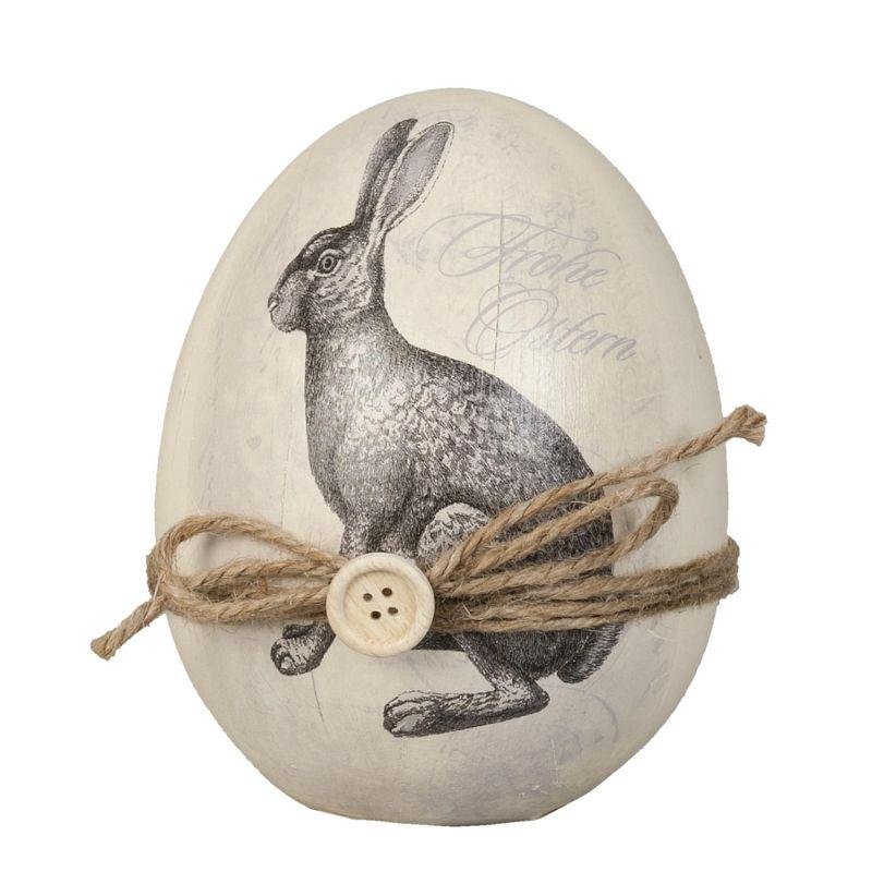 Velikonoční vajíčko s motivem zajíce, zdobené provázkem a knoflíkem. Vajíčko je vhodné jako stolní dekorace. prečítať celé